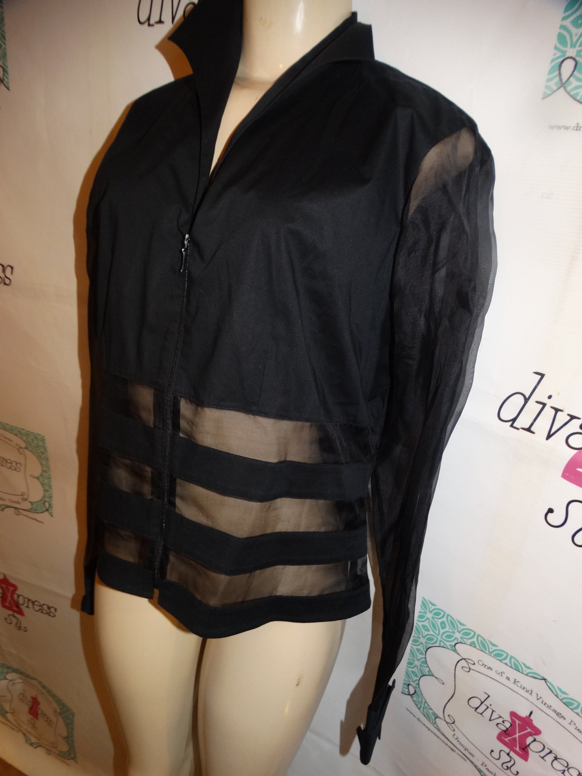 Vintage Ravel Black Sheer Sleeve Blouse Size L