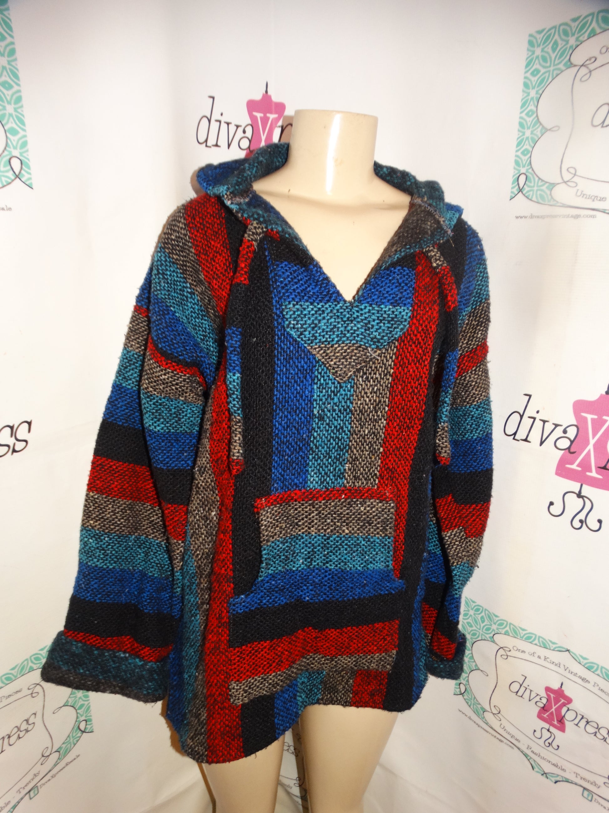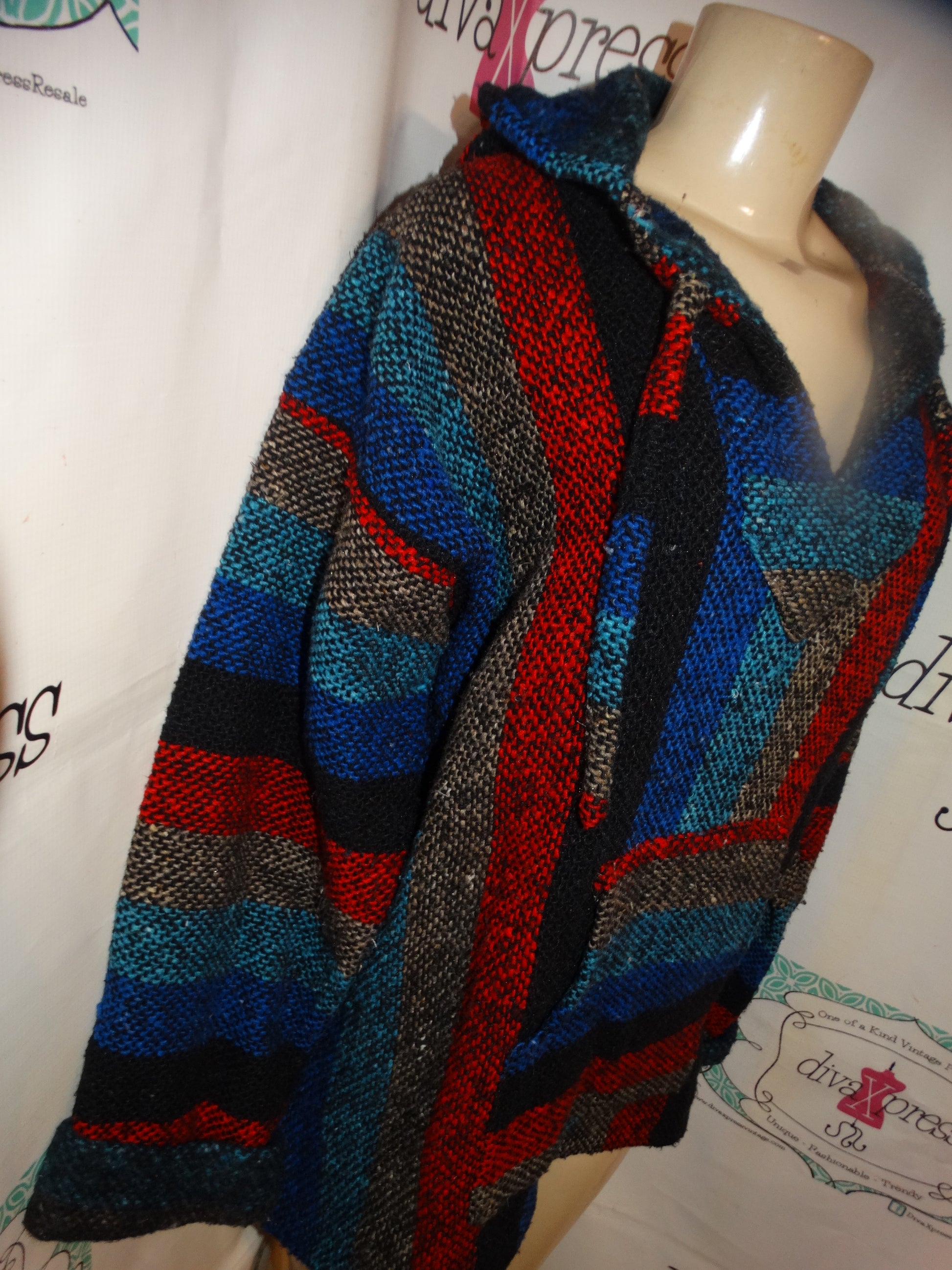 Up for sale is this lovely Vintage Red/Blue/Black Hooded Top/Jacket Size L