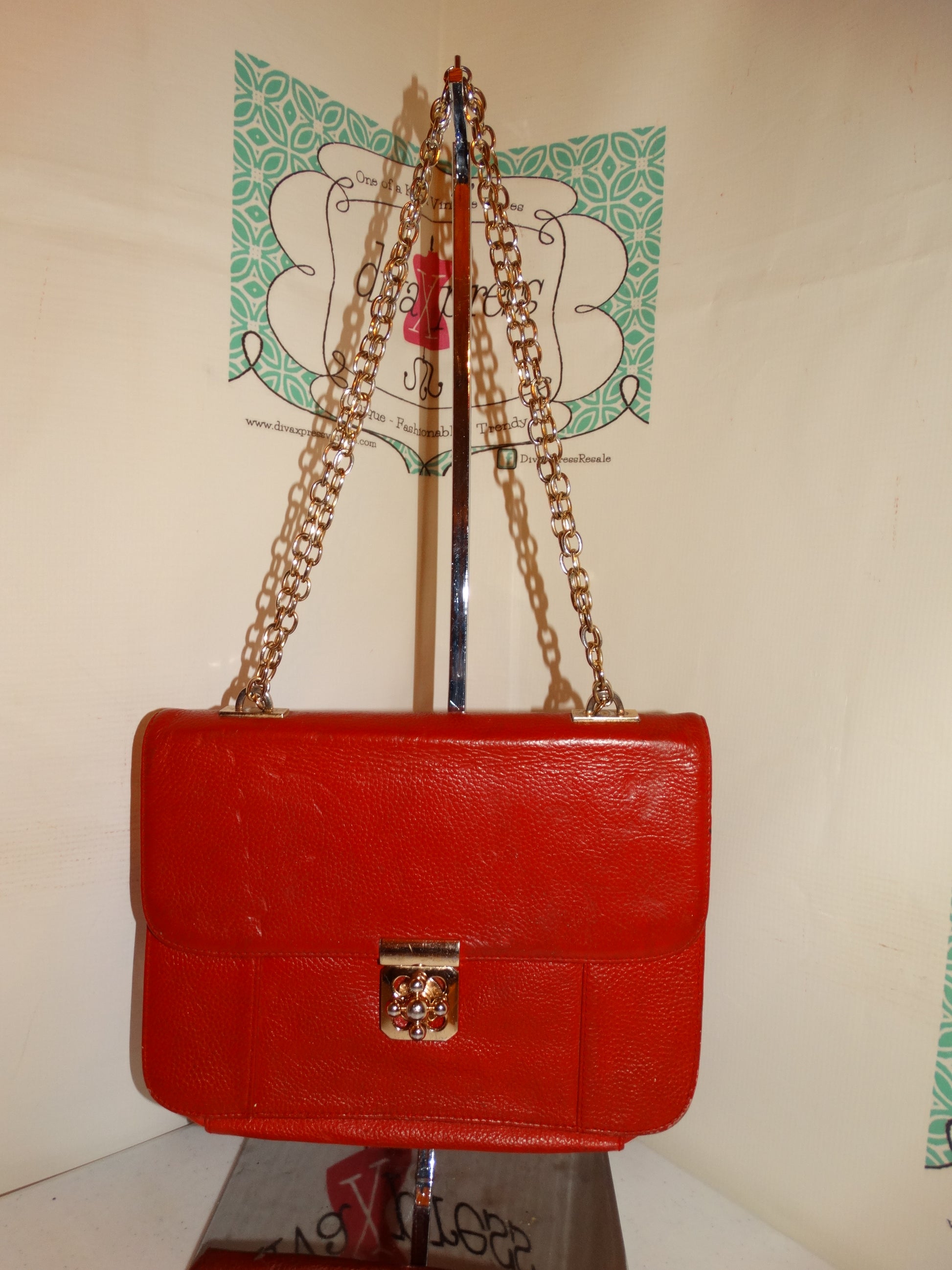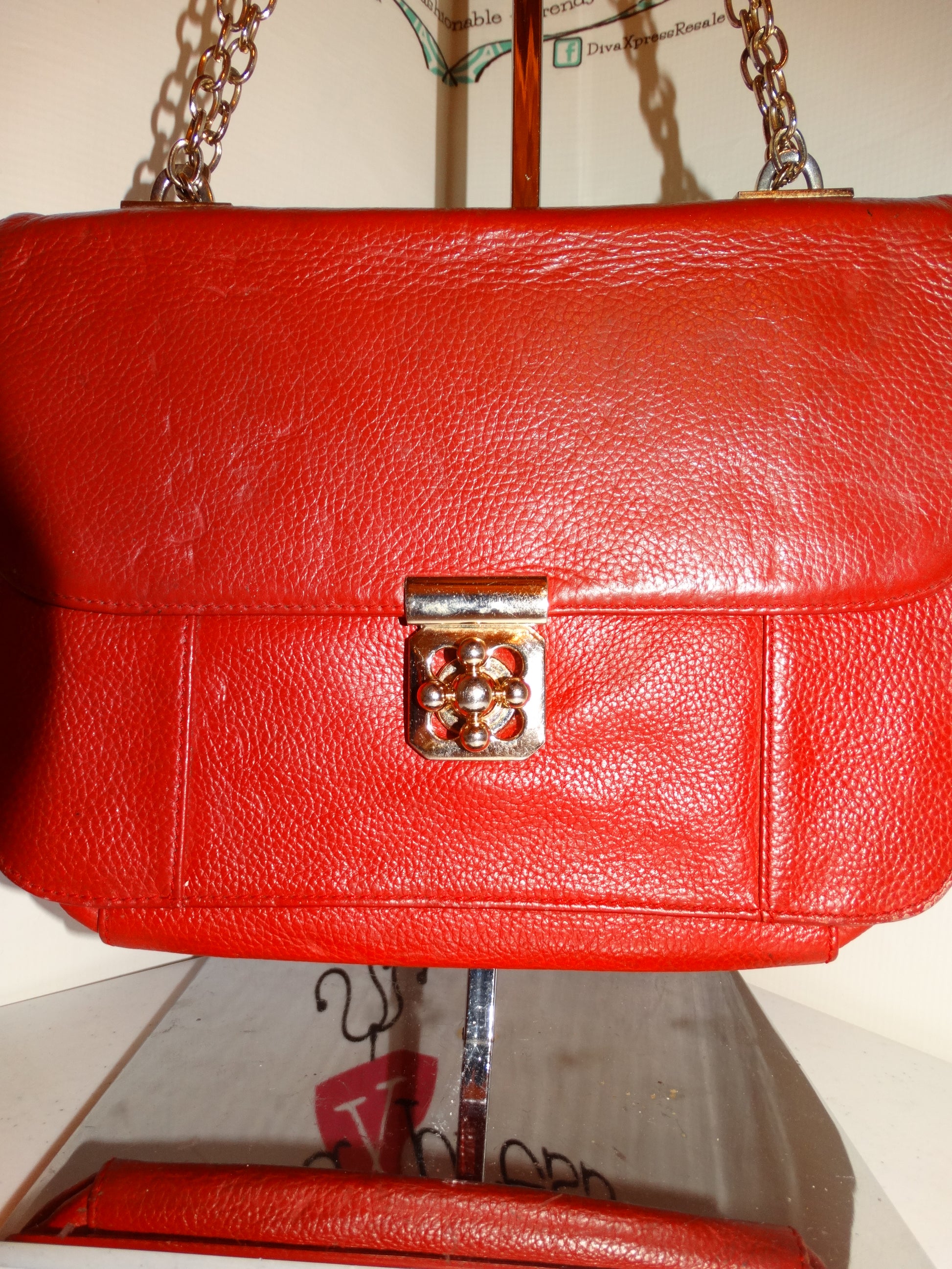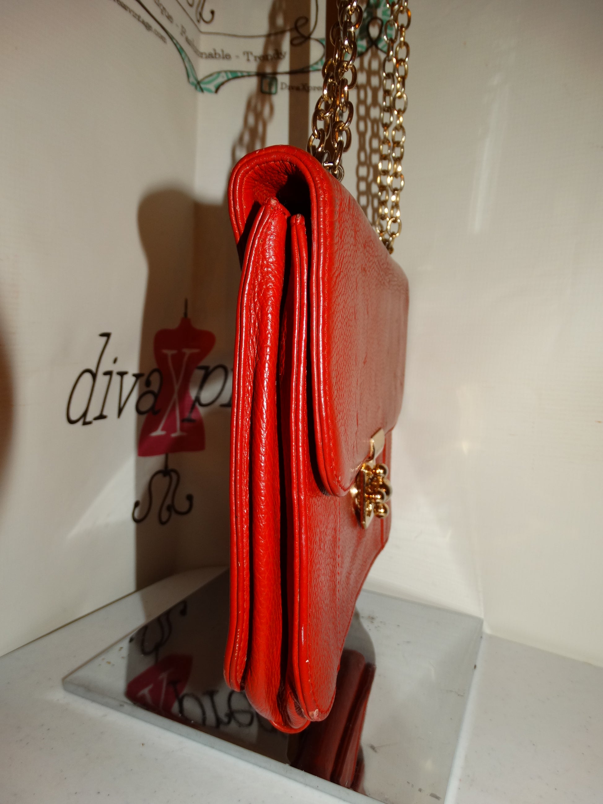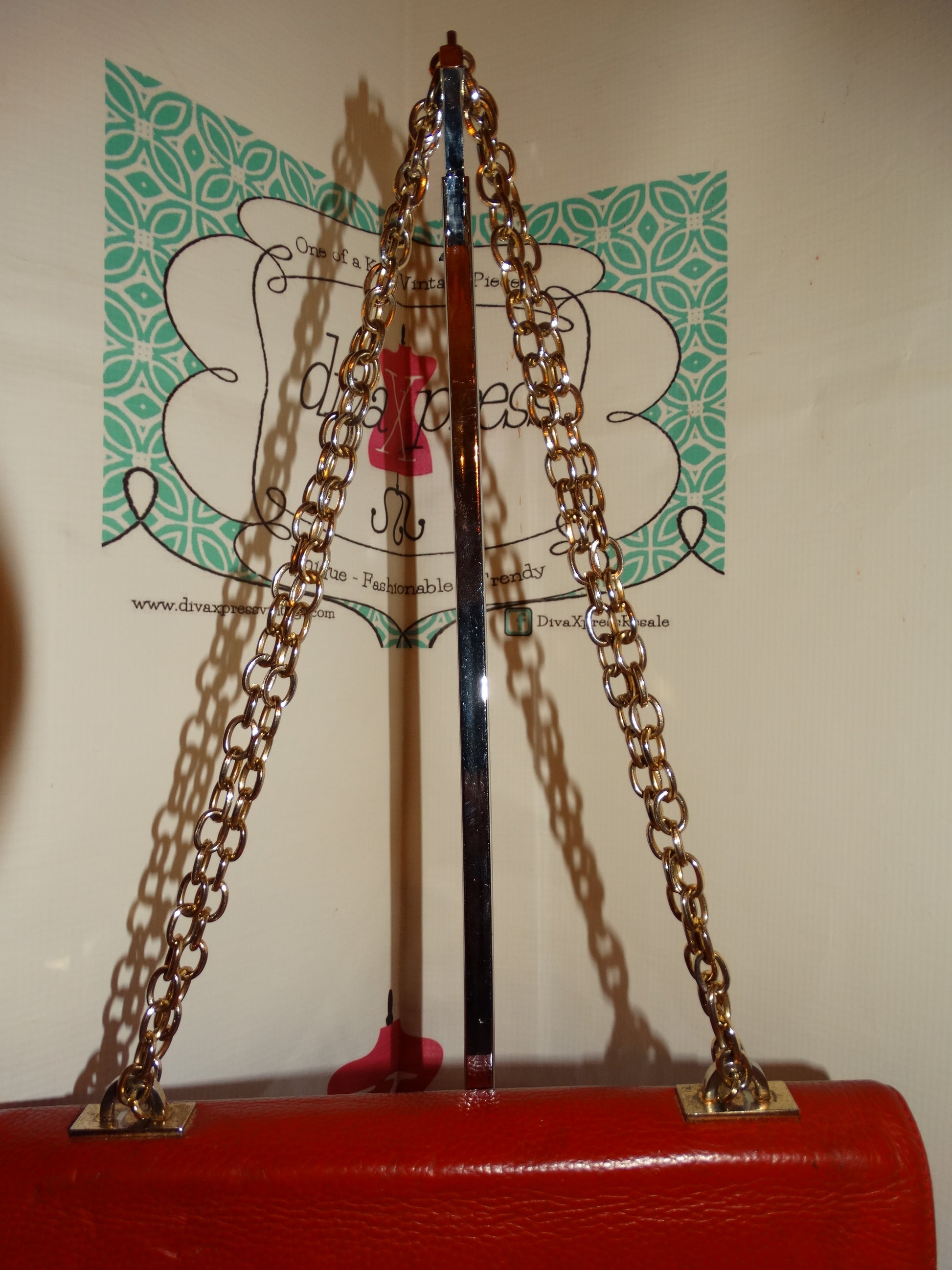 Up for sale is a lovely Vintage Red Leather KizzMe Chain Purse Size M