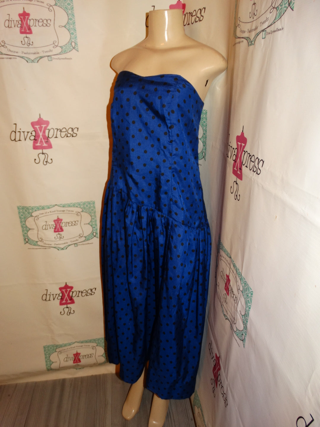 Up for sale is this lovely Vintage Royal Blue/Black Polka Dot Tube Dress Size 1x