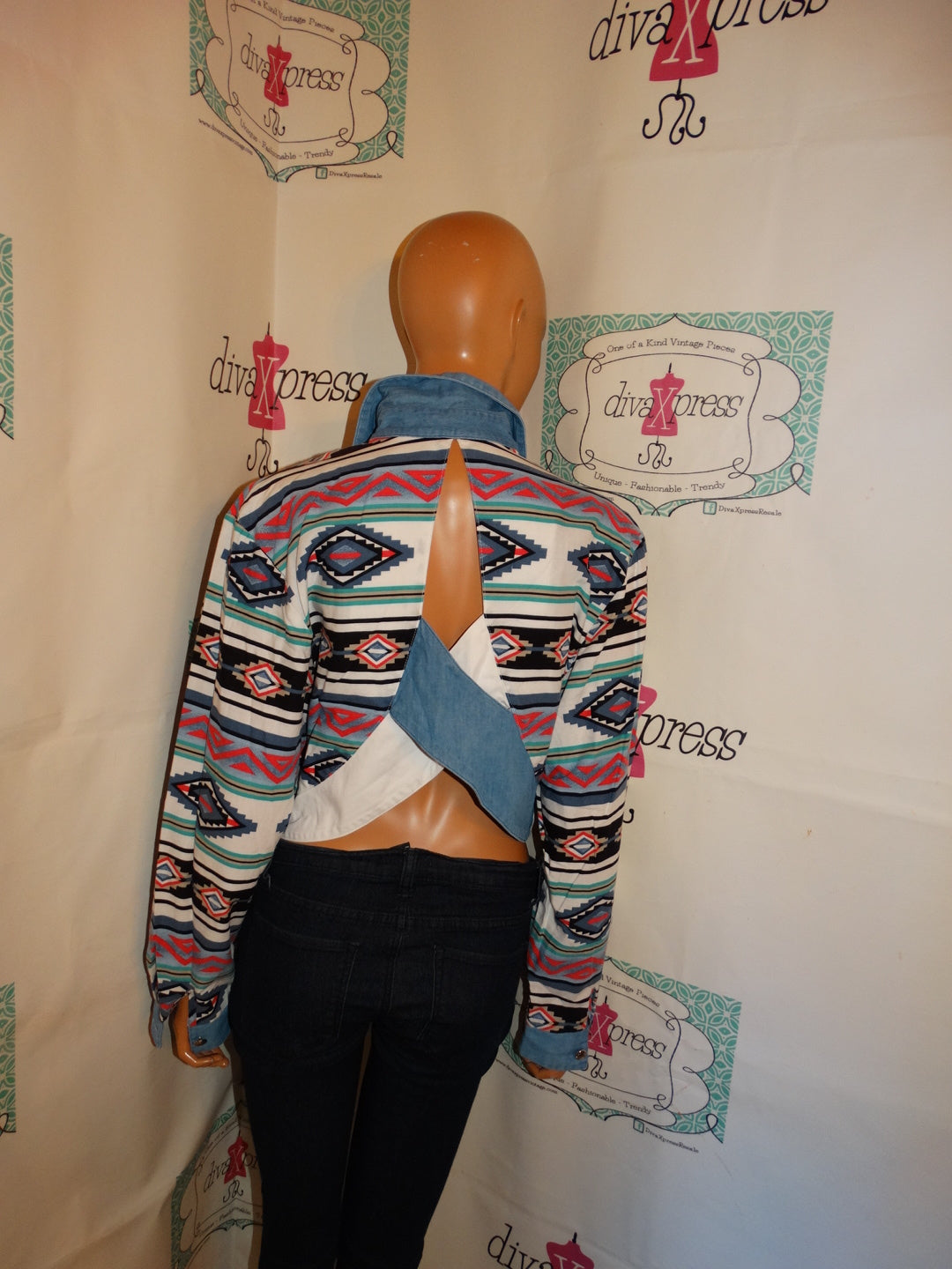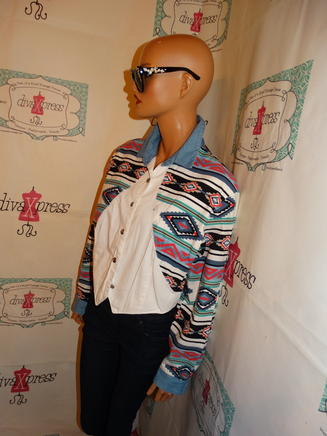 Vintage Ruff Rider /Blue White Jean Cris Cross Top Size L