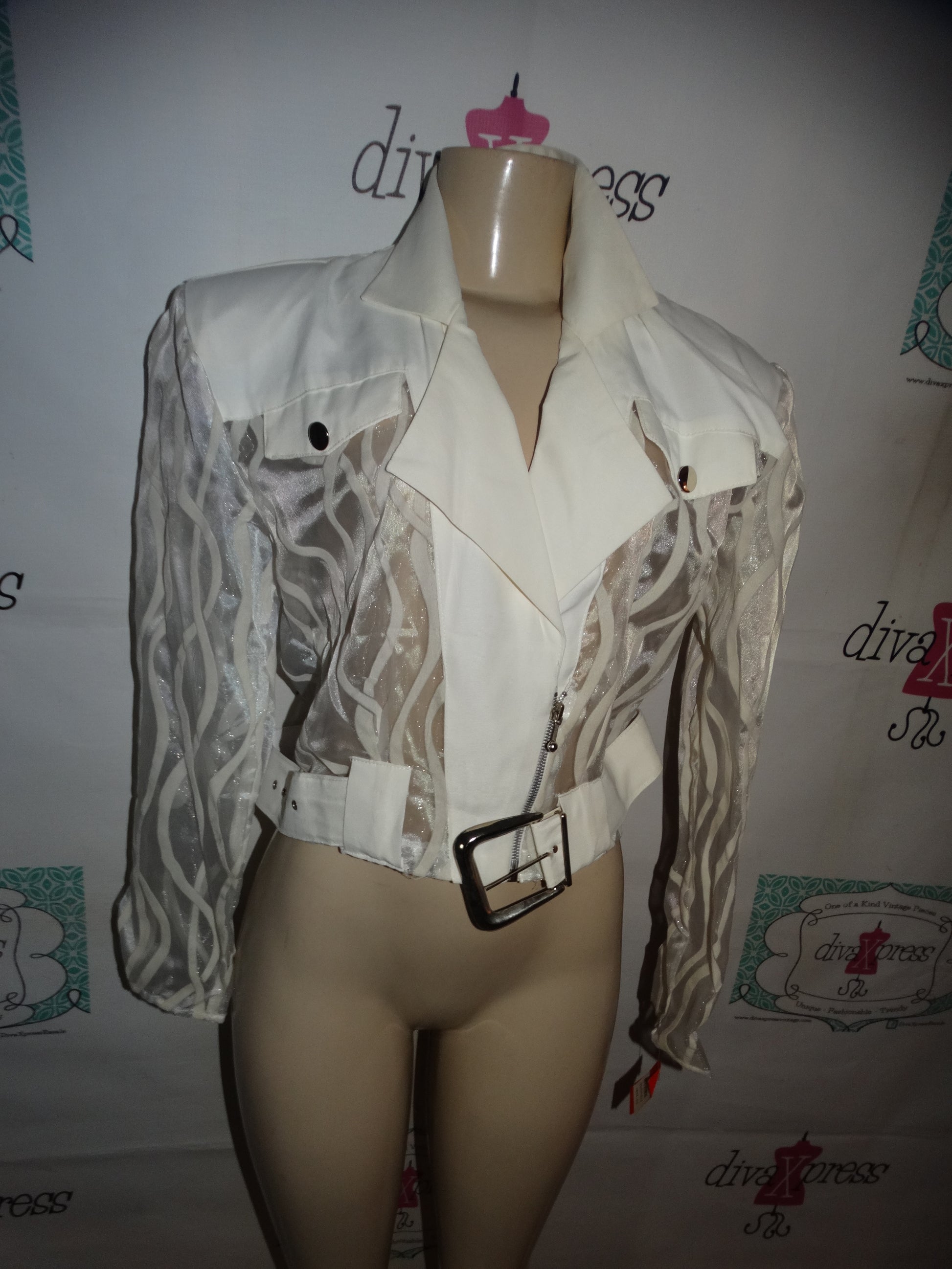 Up for sale is this lovely Vintage Russell kemp White Sheer Blazer Size L