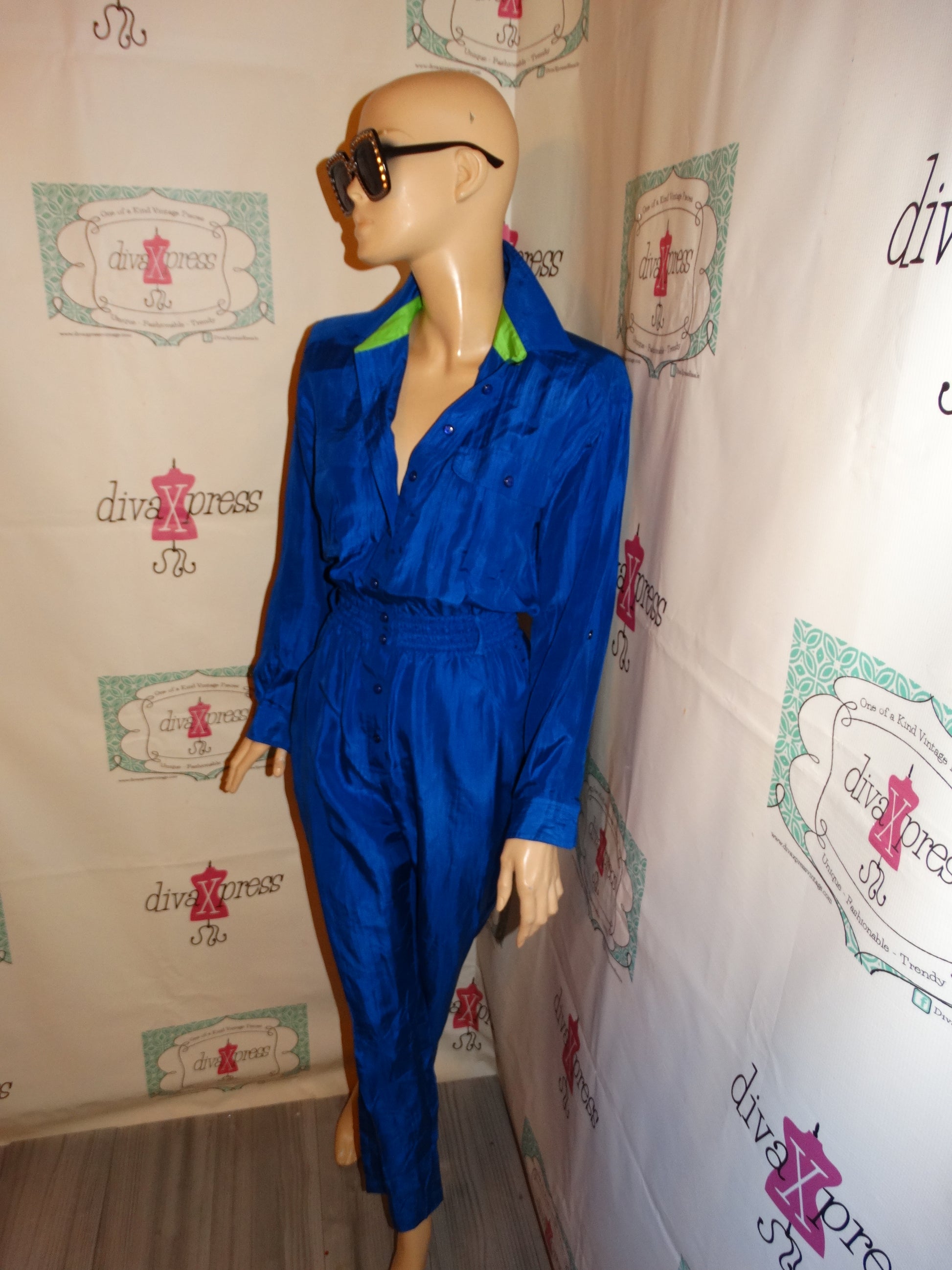 Vintage SK& Company Royal Blue/Green Romper Size M