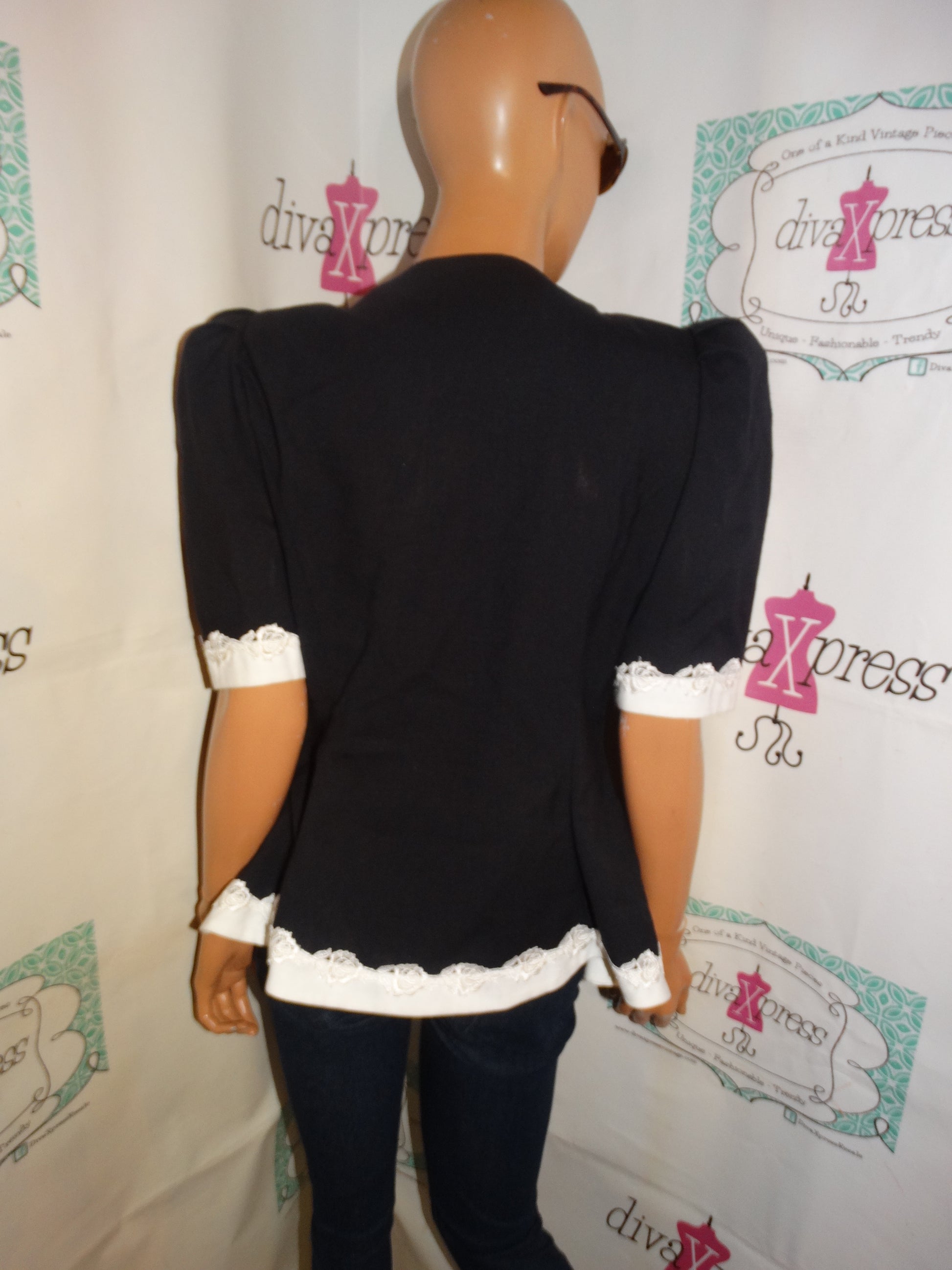 Vintage SL Fashions Black/White Bow Top Size M