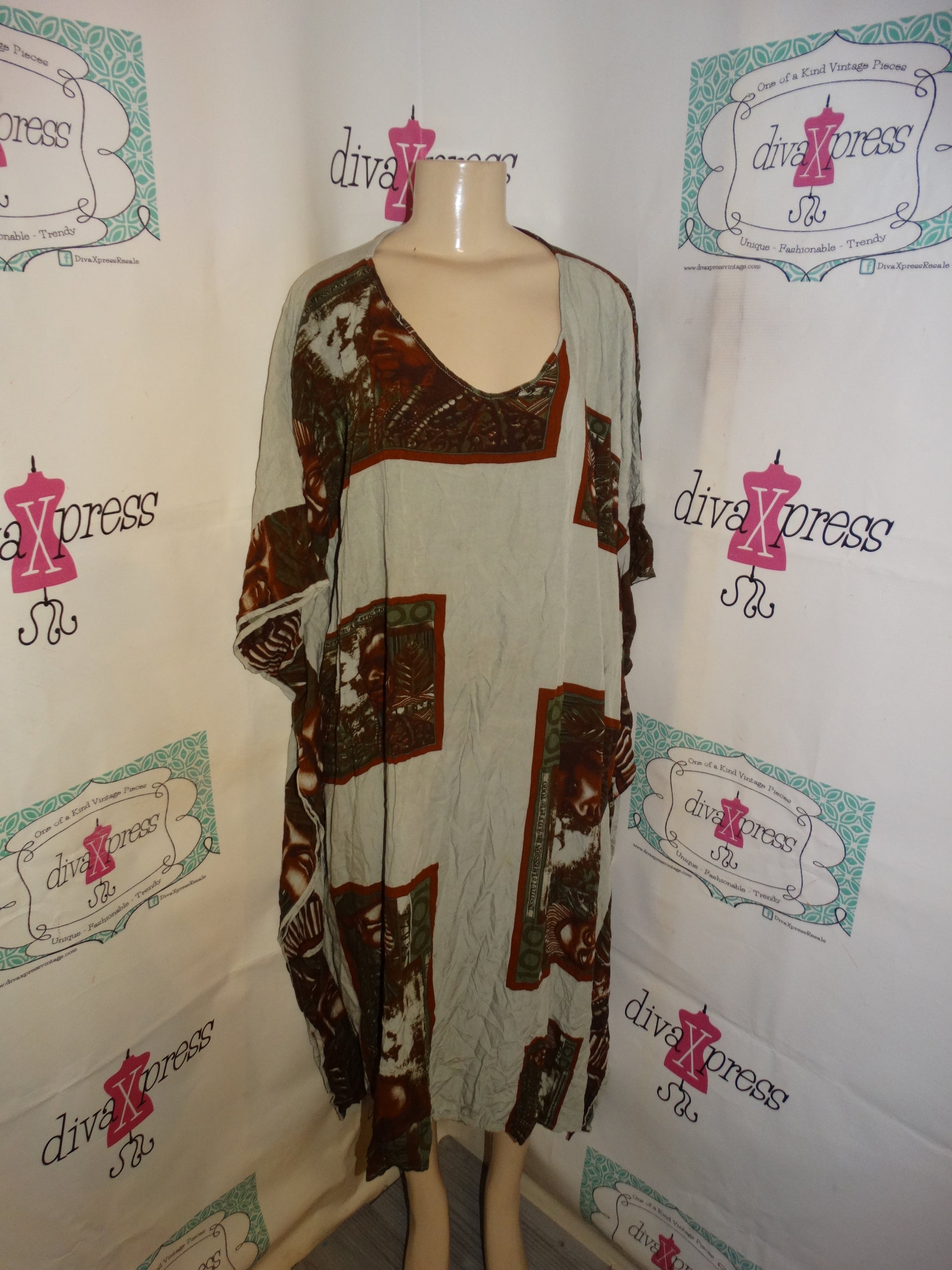 Vintage Step N Style Grey/Brown Dress Size 2x