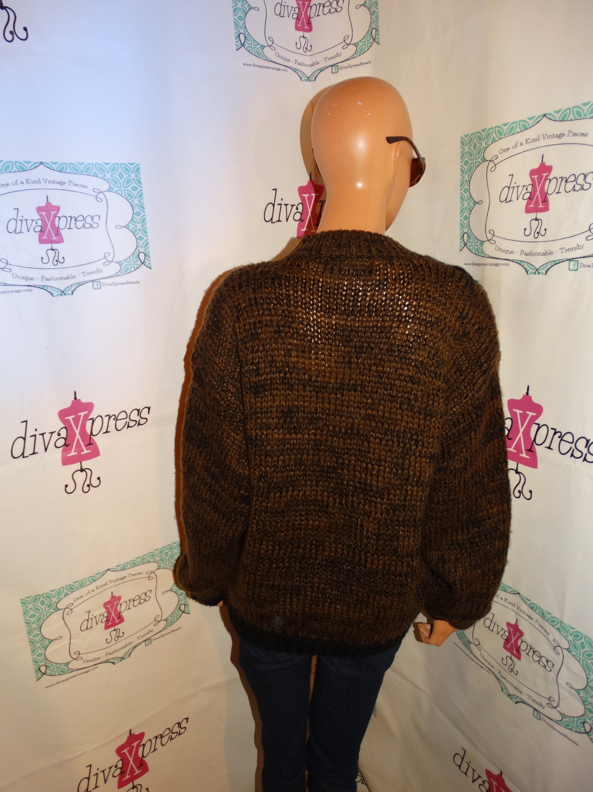 Vintage Street Scenes Green/Black Sweater Leather Patch Sweater Size L