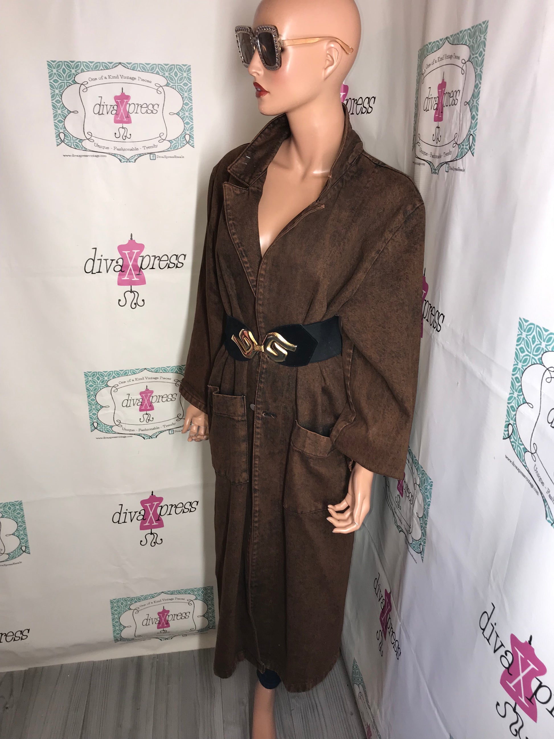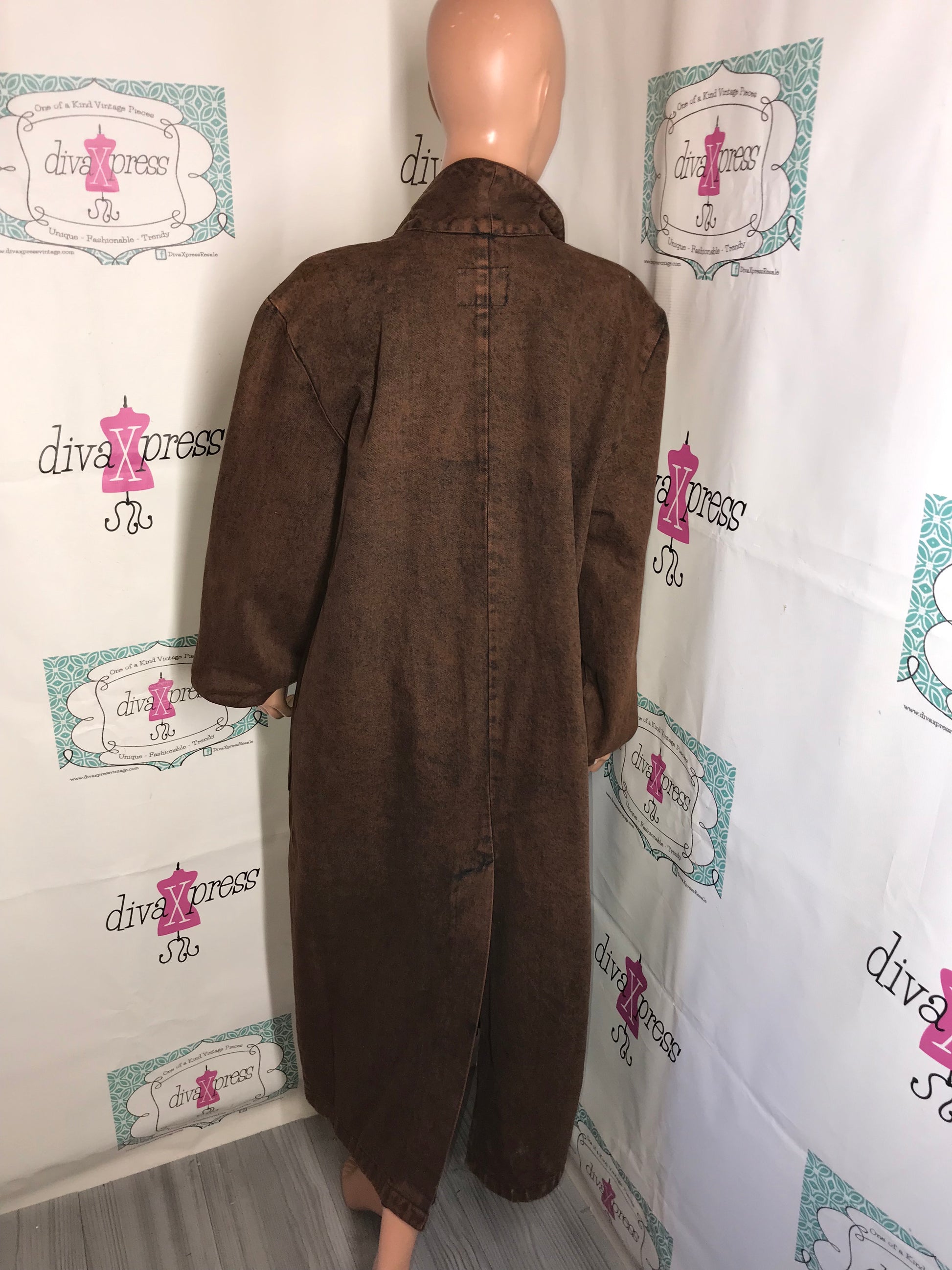 Vintage Sundance Brown Acid Wash Long Jean Jacket 1x