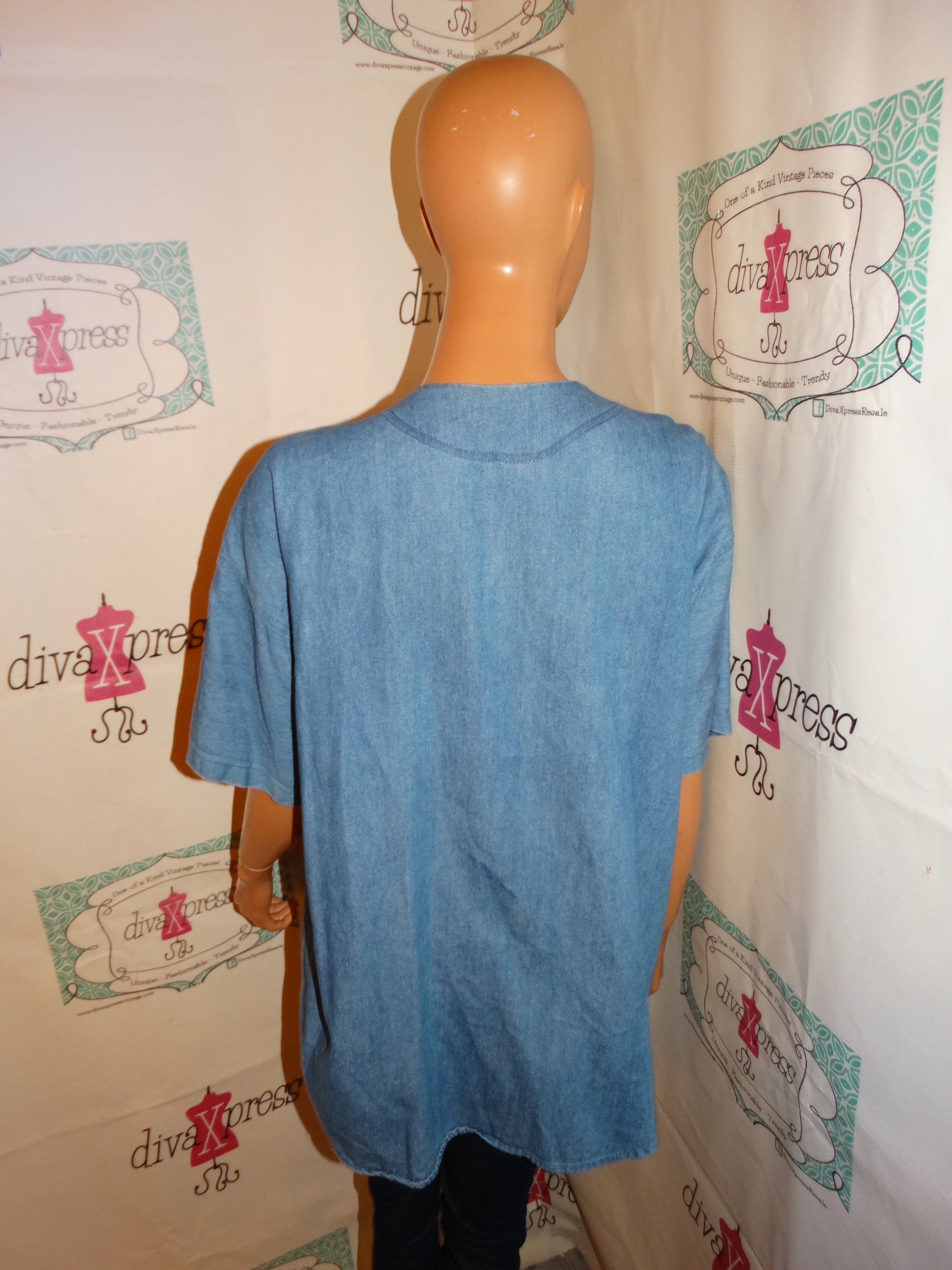 Vintage Super Line Blue Jean Beaded Top Size 1x