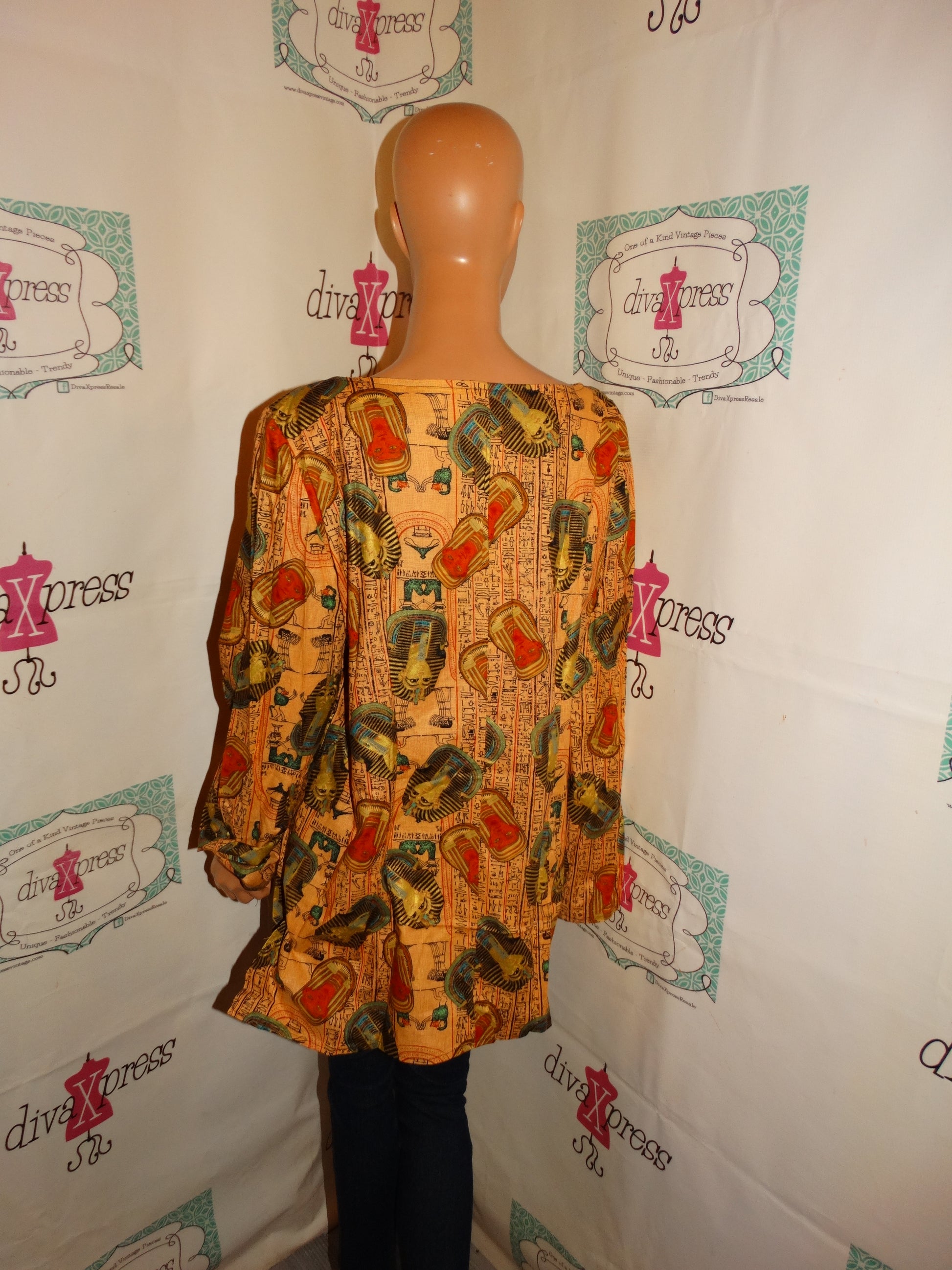 Up for sale is this lovely Vintage Tan Egyptian Blouse Size 1x
