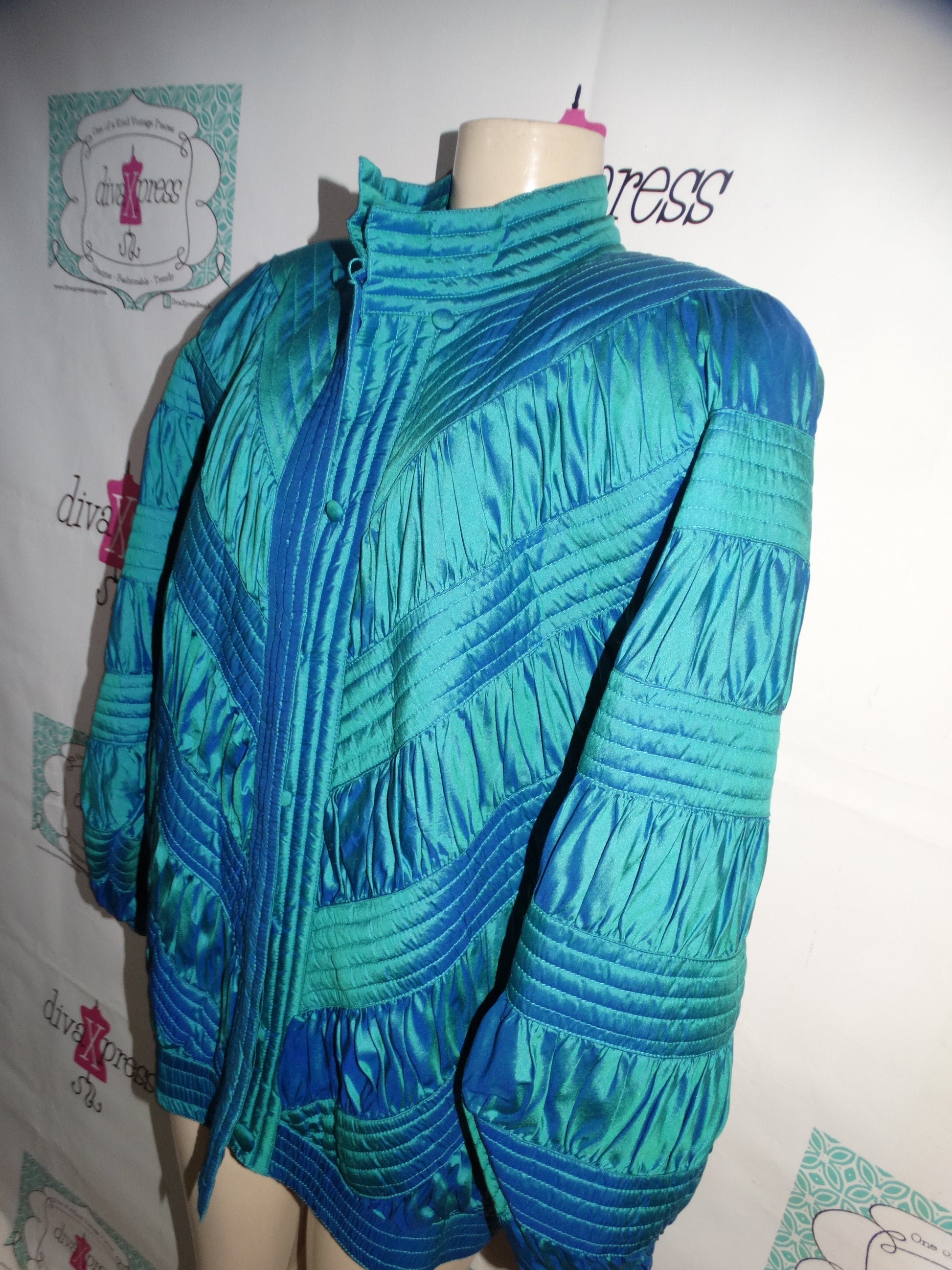 Up for sale is this lovely Vintage Thai Silk Green Bomber Jacket Size L