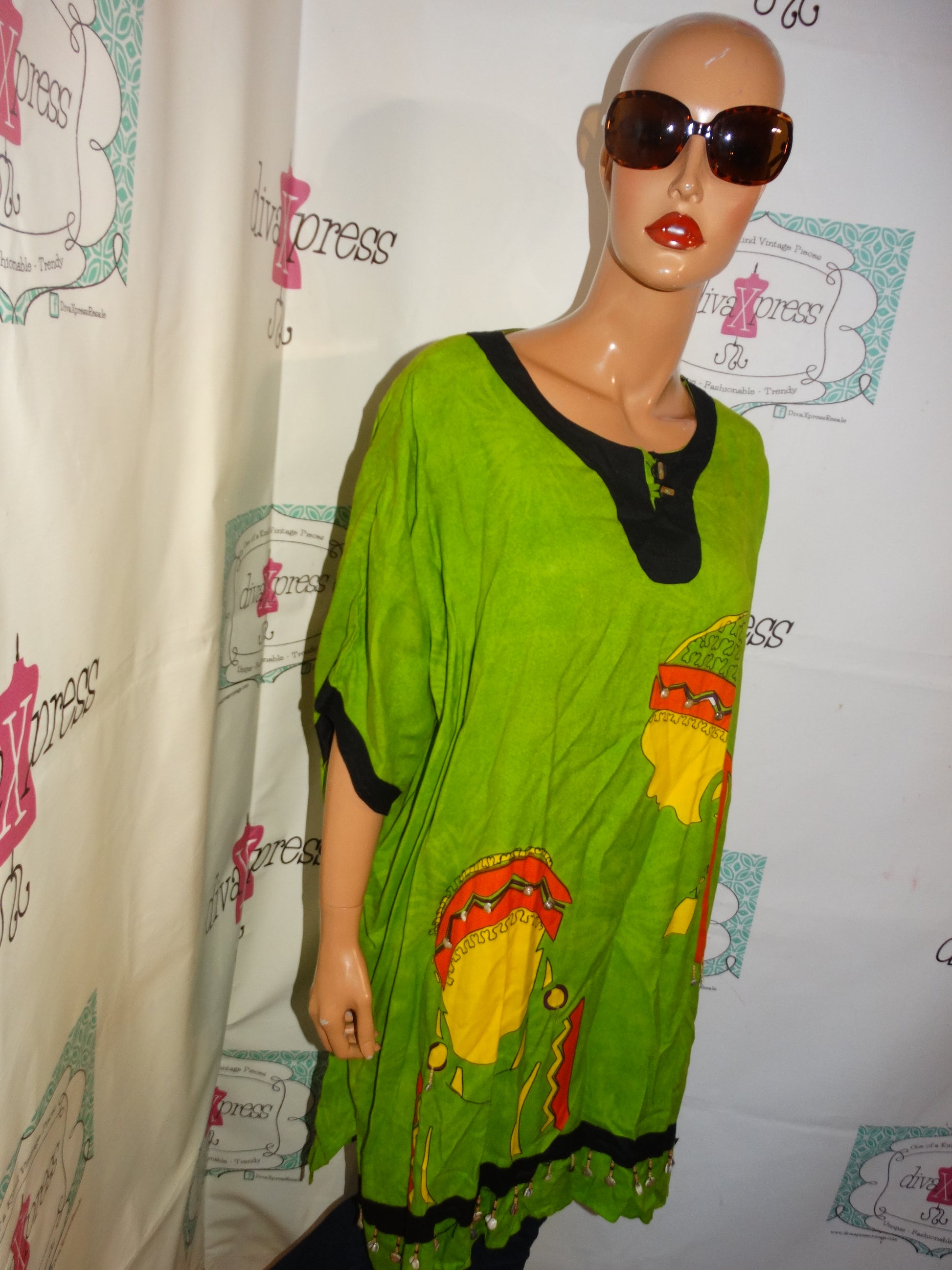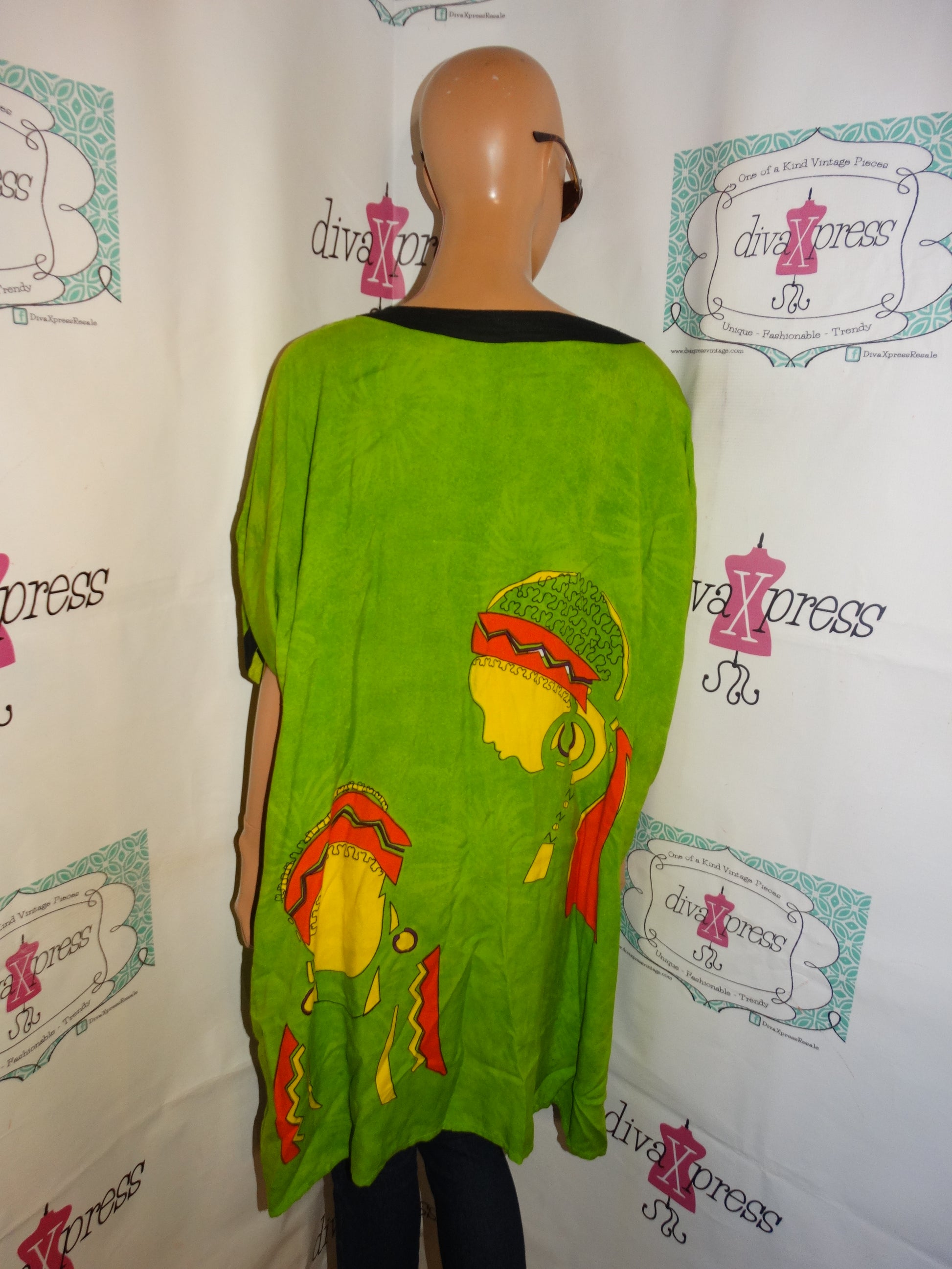 Up for sale is this lovely Vintage The African Scene Green Face Top Size 2x