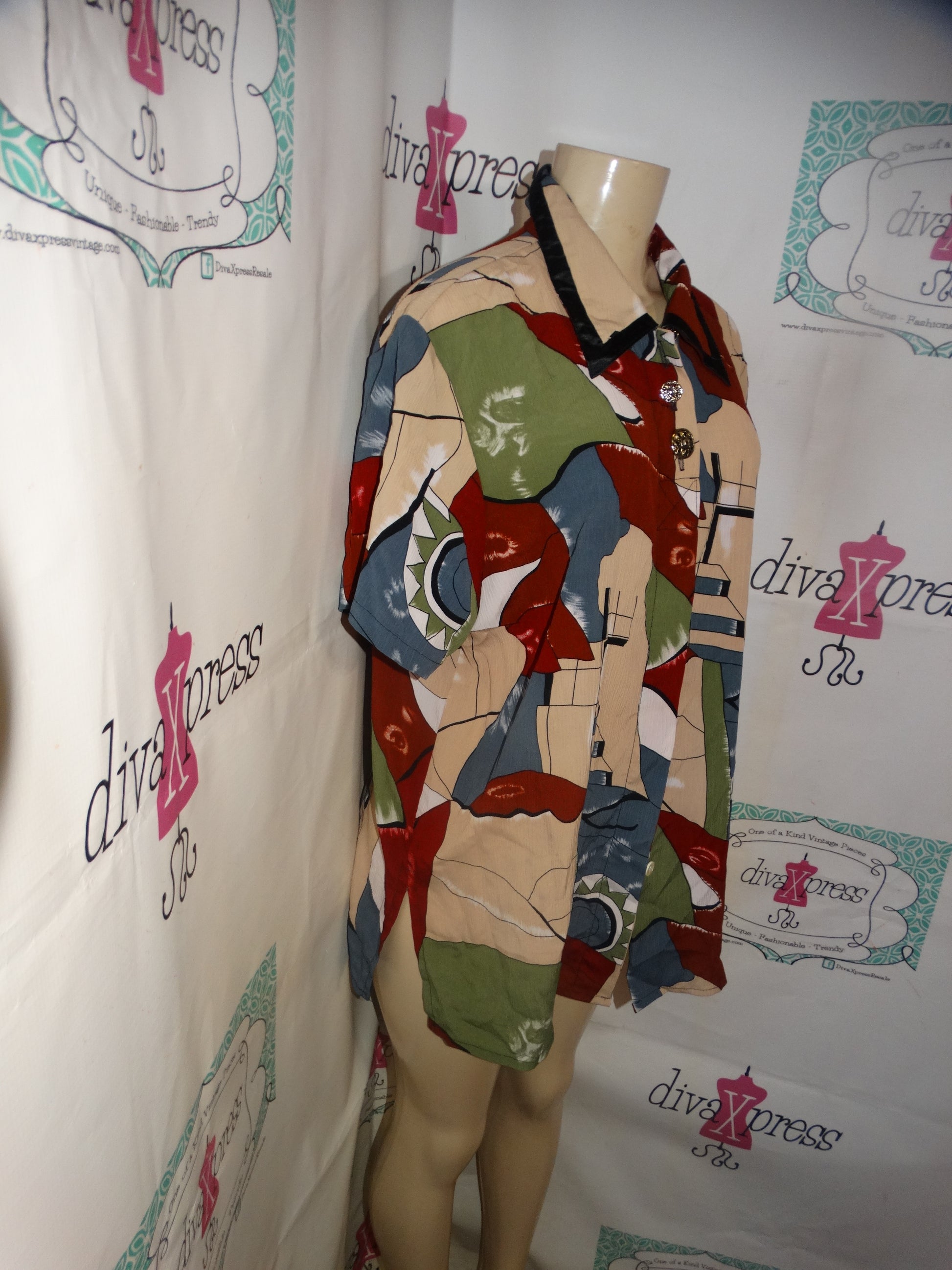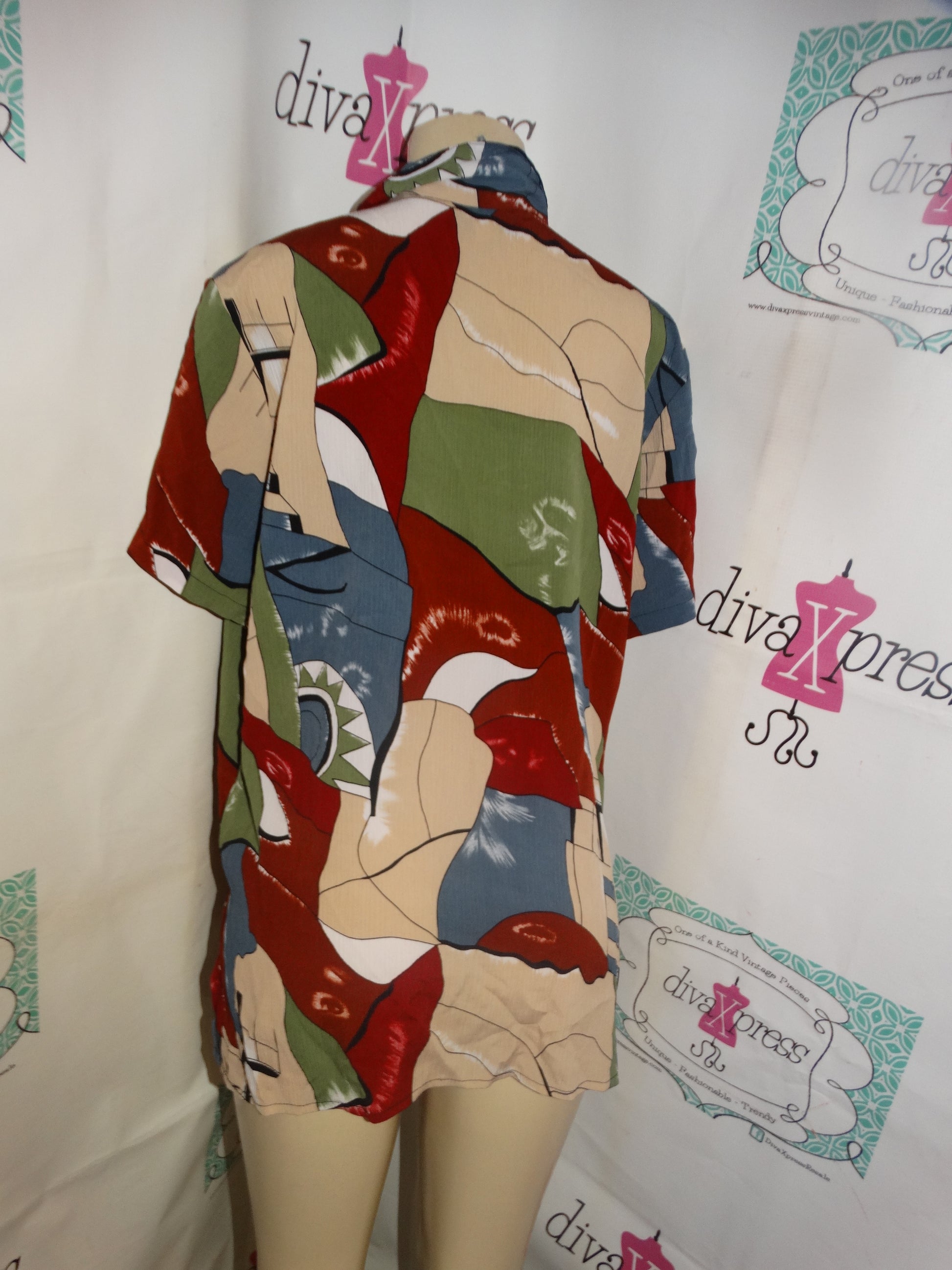 Vintage Truffles White/Blue/Burgundy Blouse Size XL