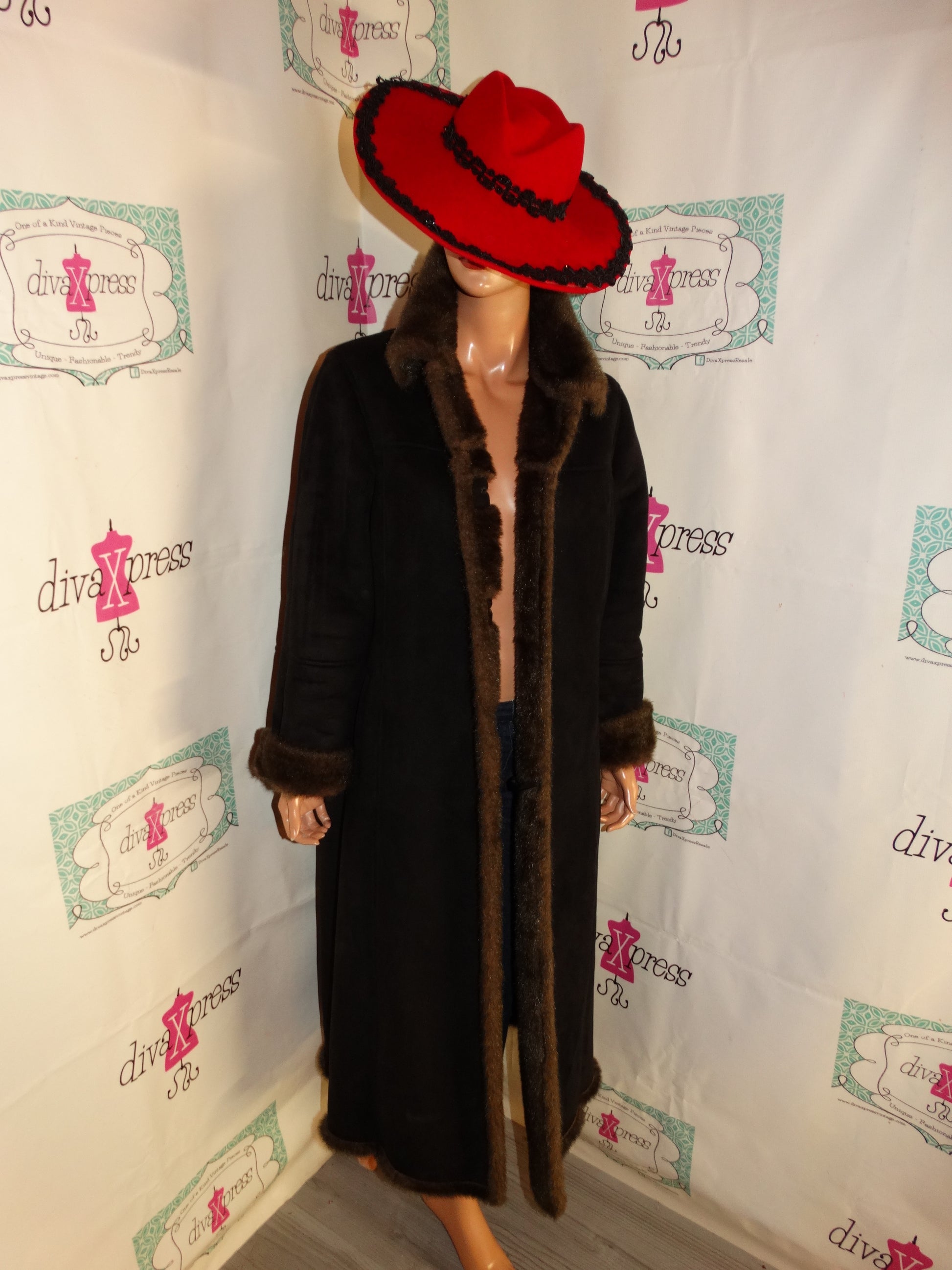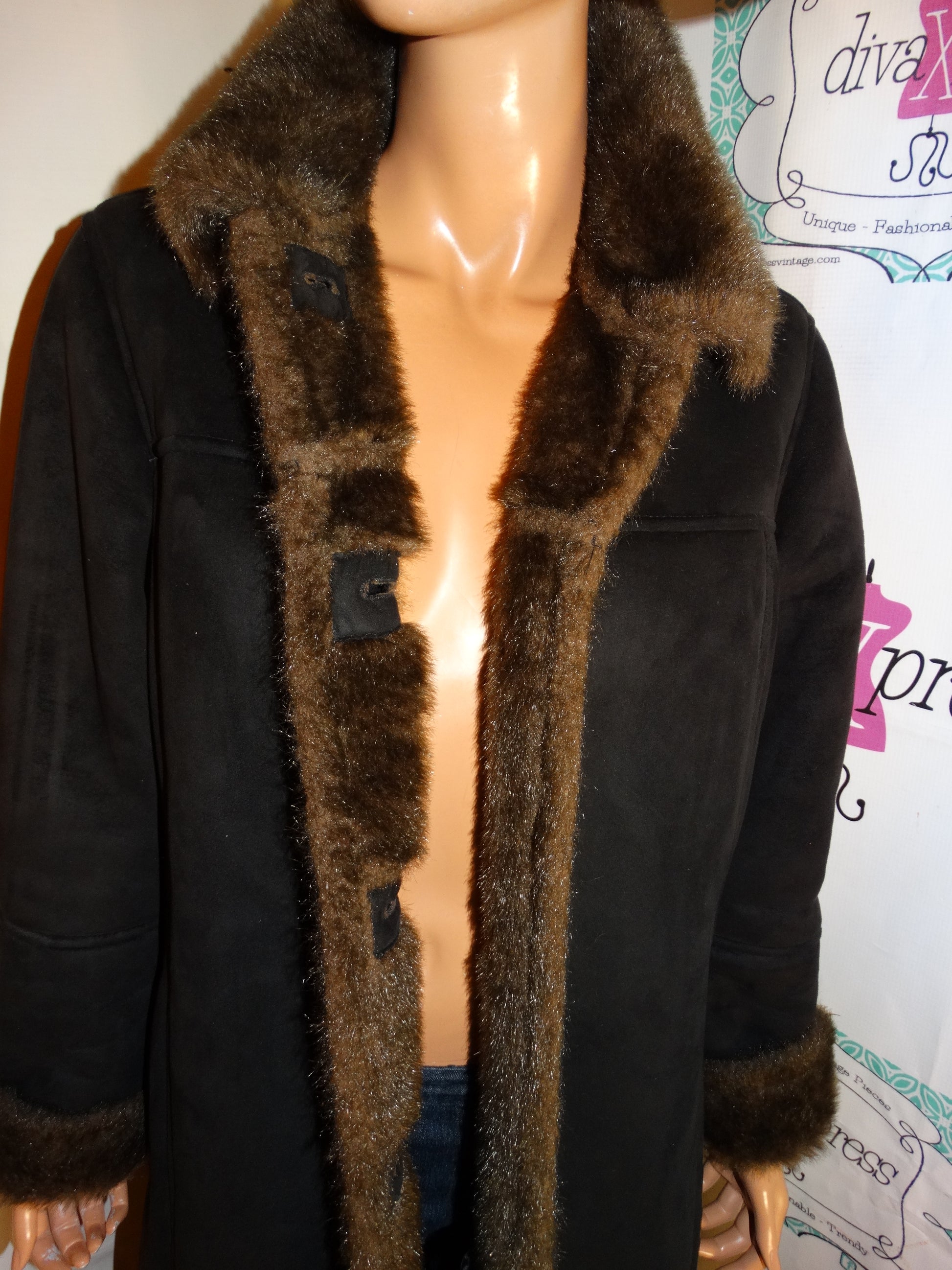 Vintage UTex Black Faux Fur Collar Sleeve Coat Size L