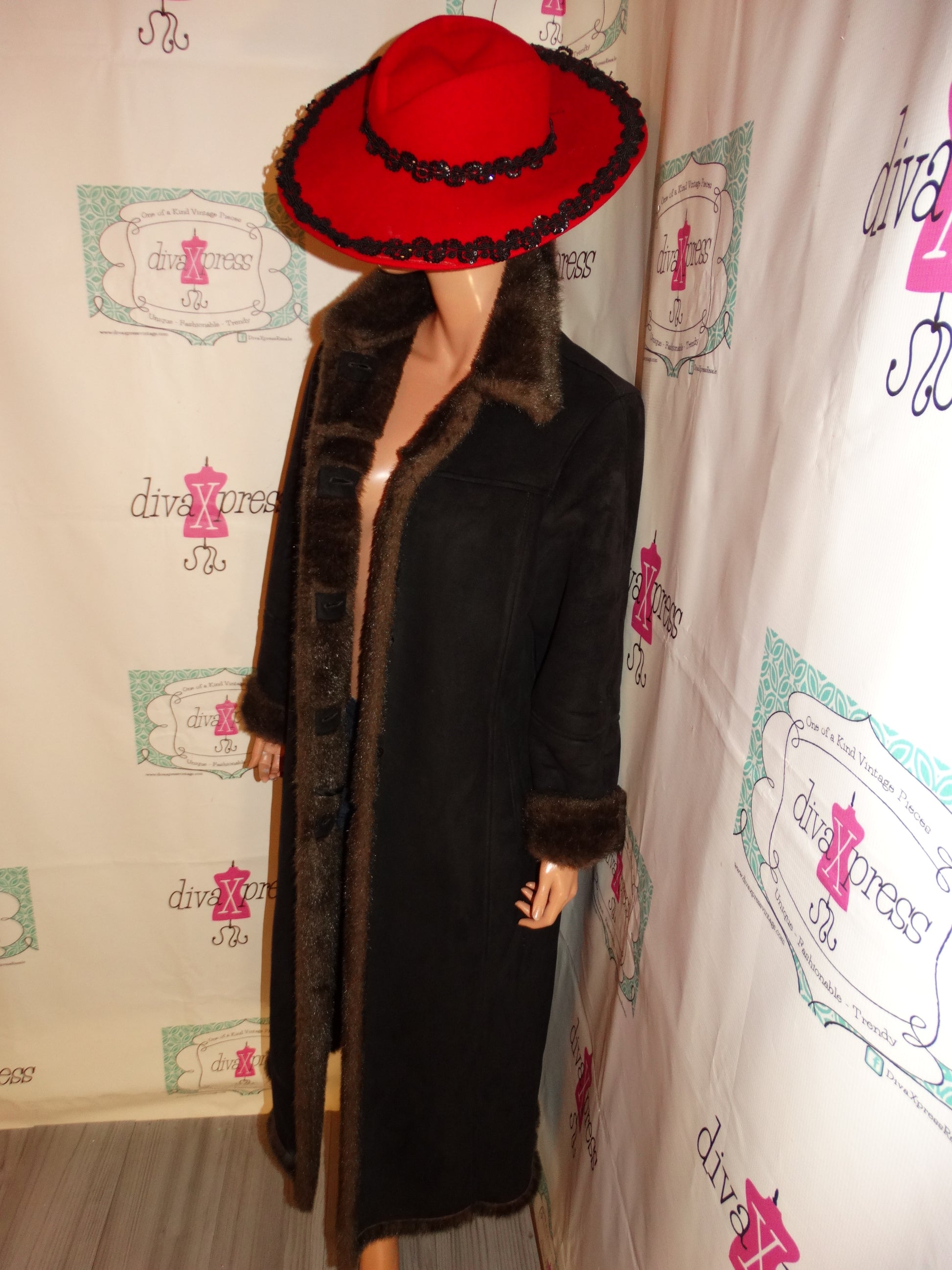Up for sale is this lovely Vintage UTex Black Faux Fur Collar Sleeve Coat Size L