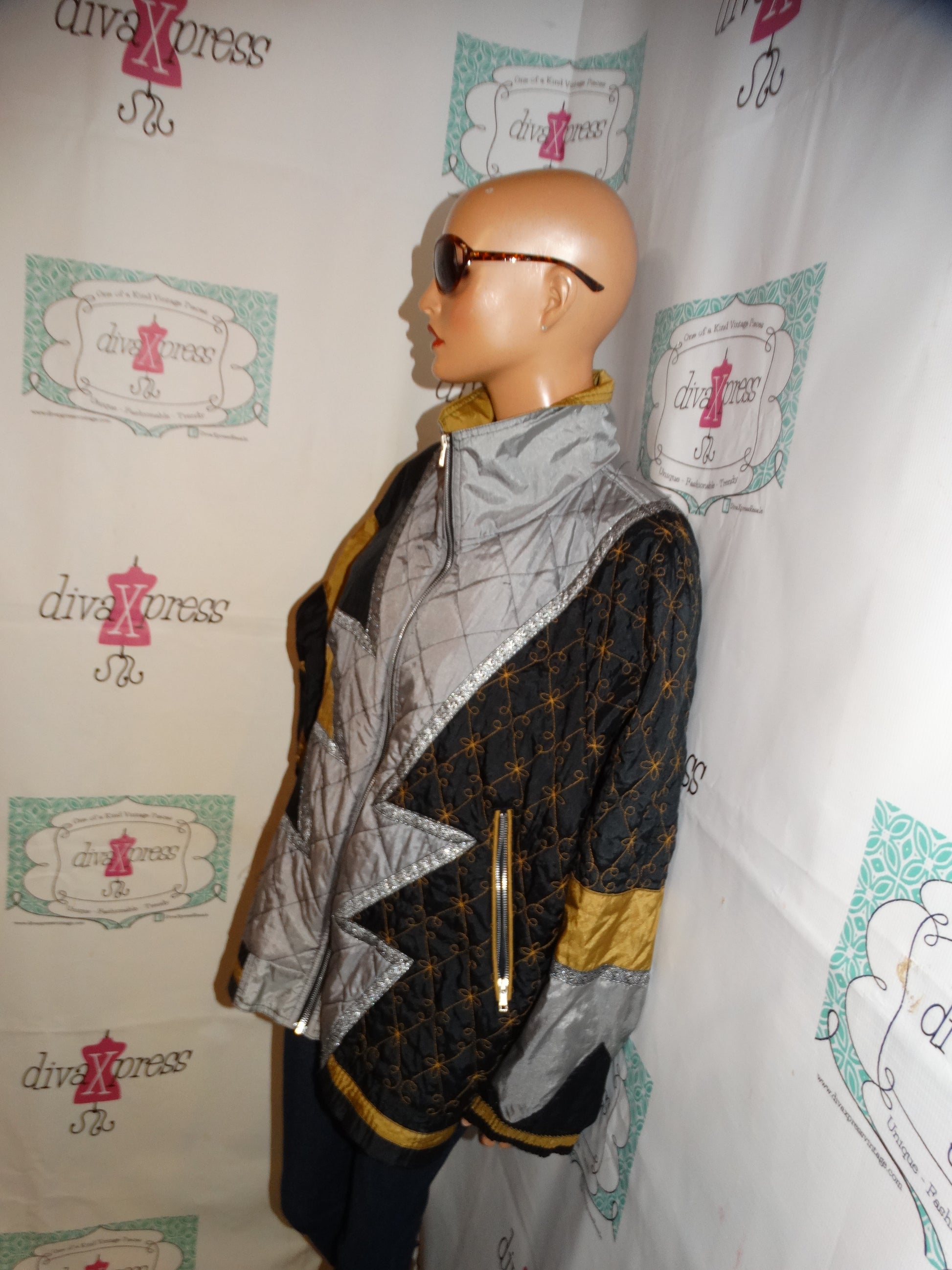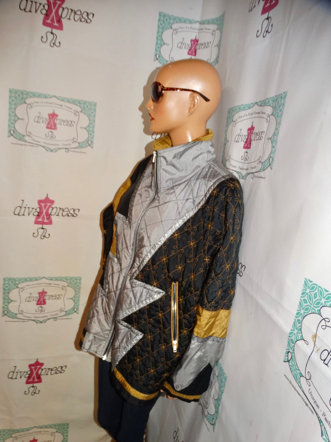 Up for sale is this lovely Vintage Venezia Black/Gold/Silver Bomber Jacket Size 2x