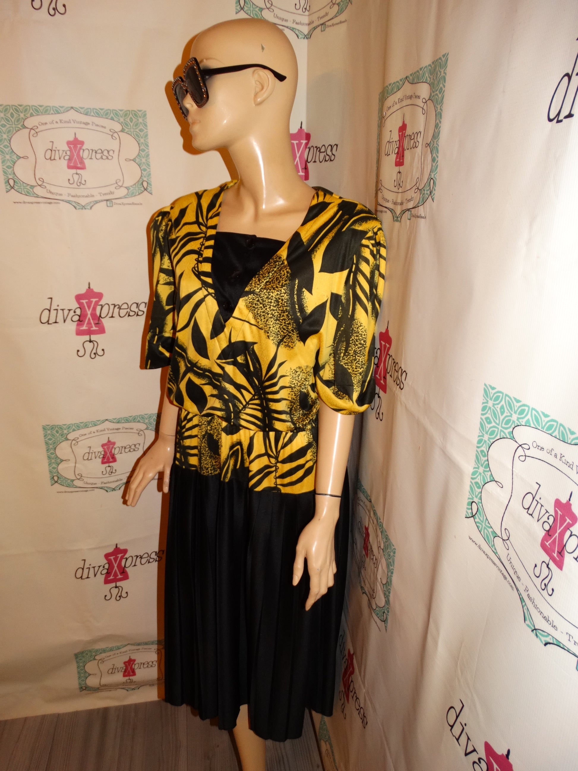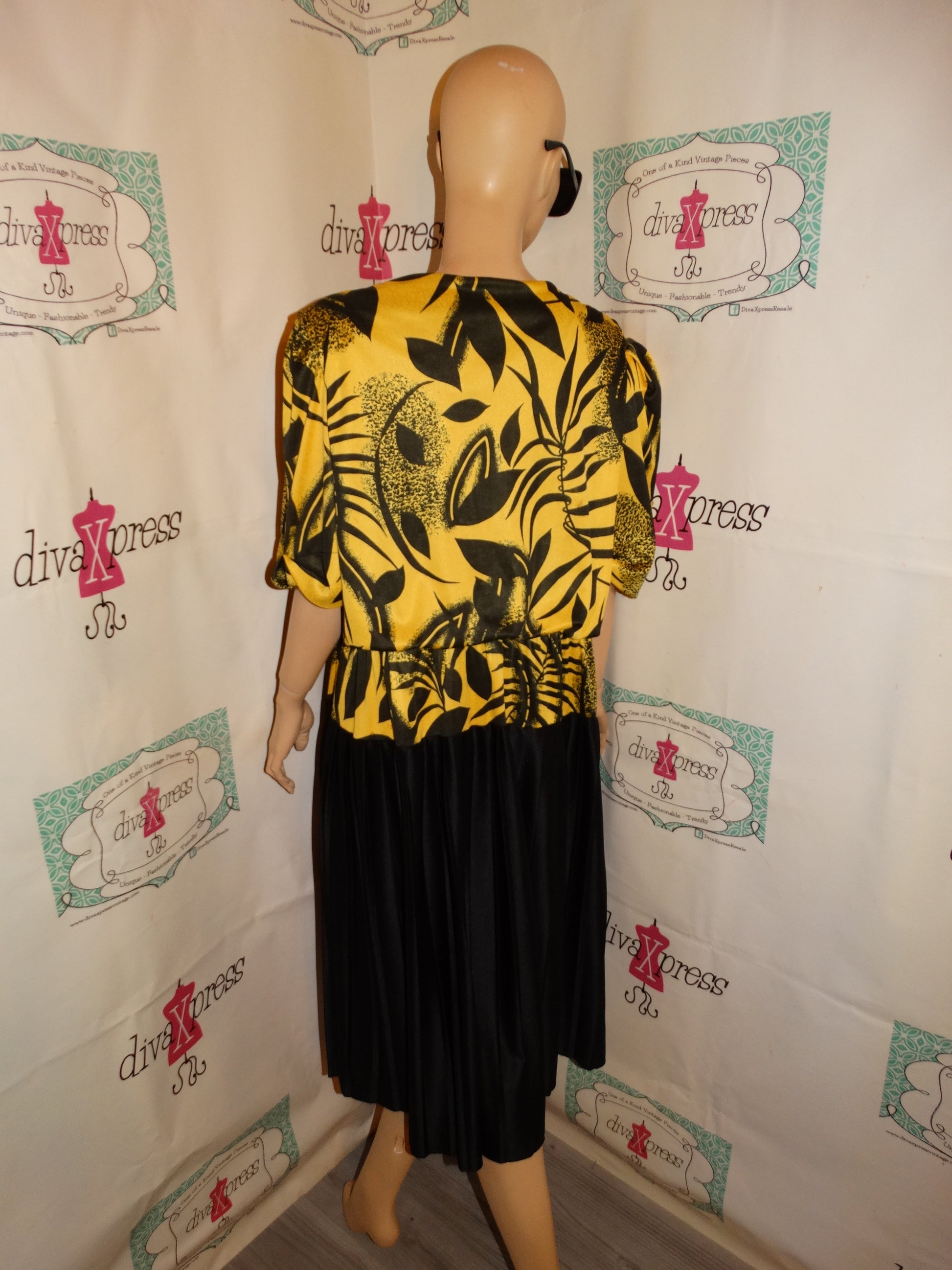 Up for sale is this lovely Vintage Yellow/Black Pleated Dress Size XL