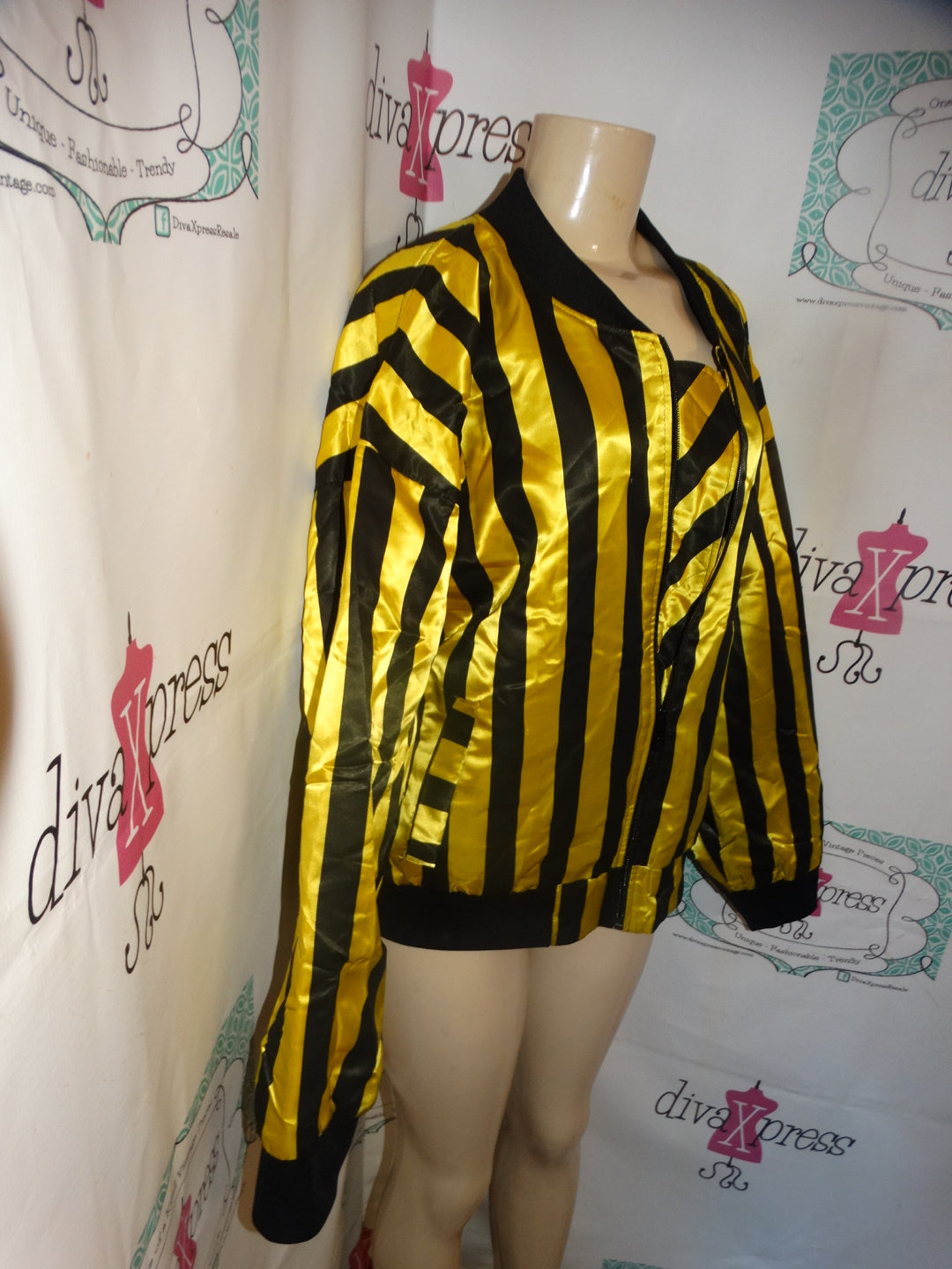 Up for sale is this lovely Vintage Yellow/Black Striped Jacket Size L