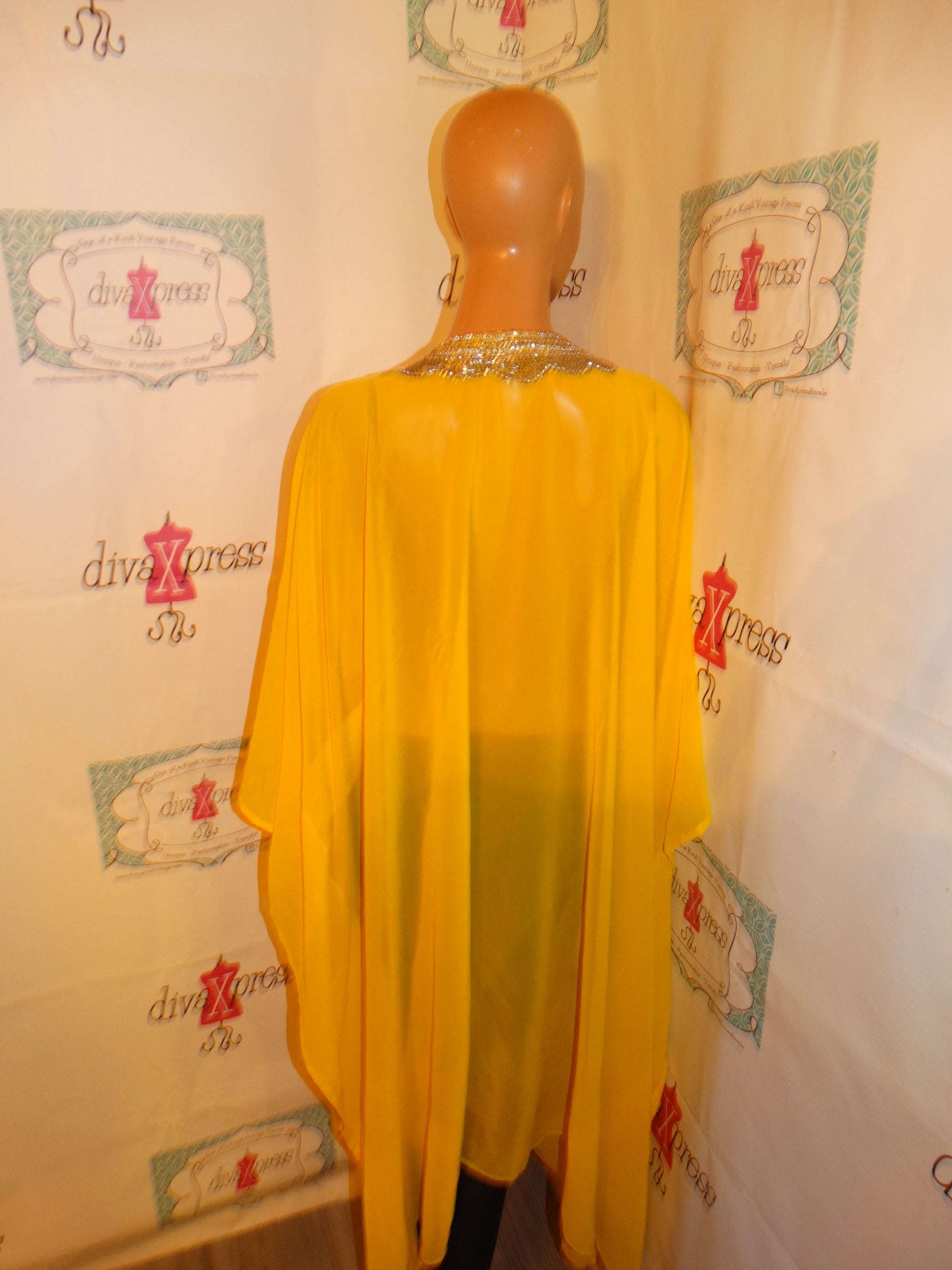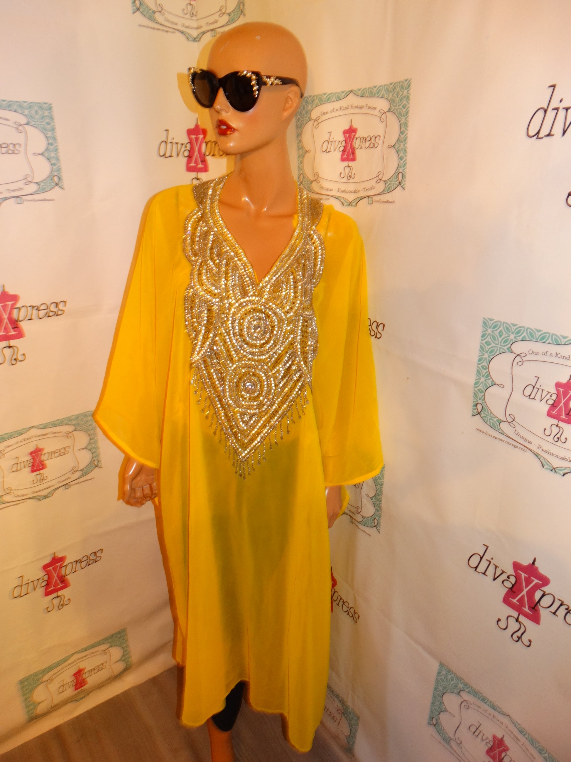 Up for sale is this lovely Vintage Yellow Silver Sheer Heavy Beaded Throw Size 1x