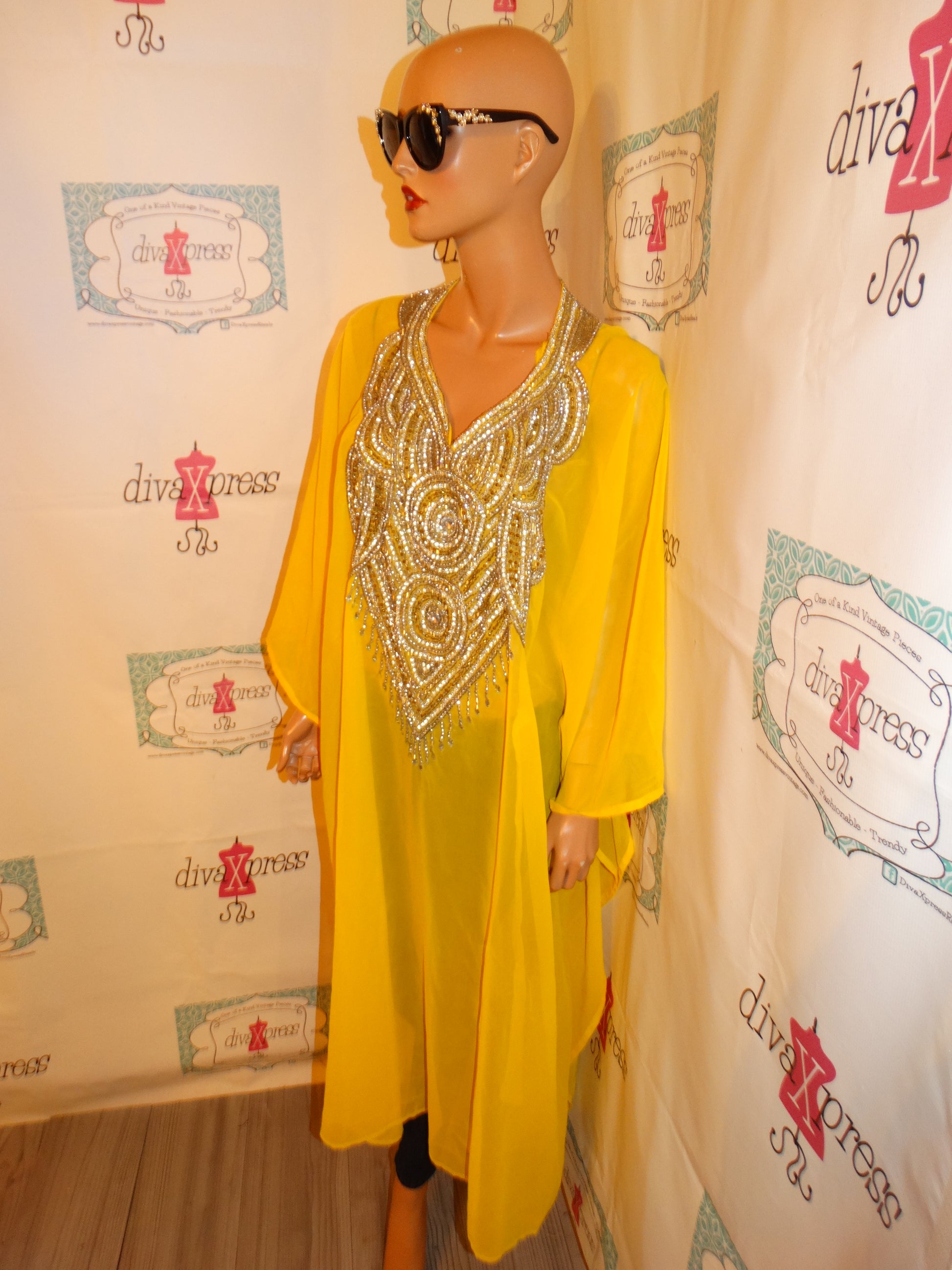 Vintage Yellow Silver Sheer Heavy Beaded Throw Size 1x